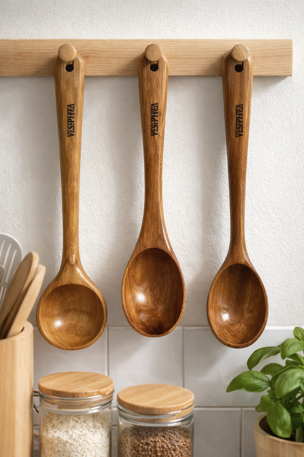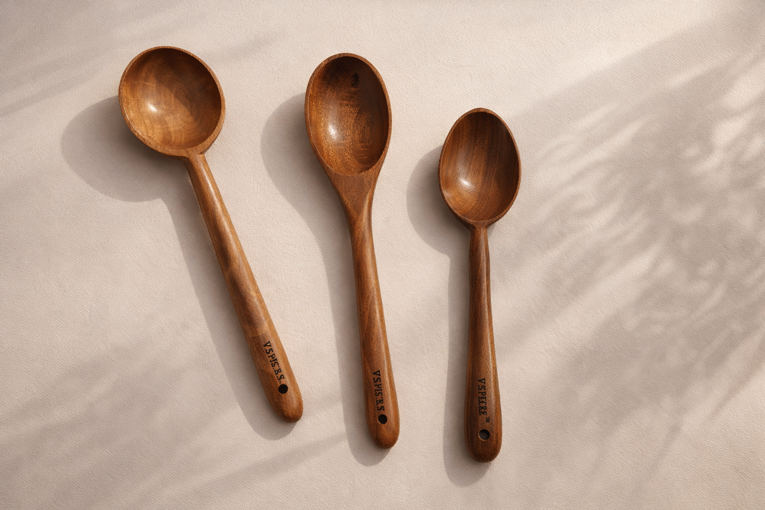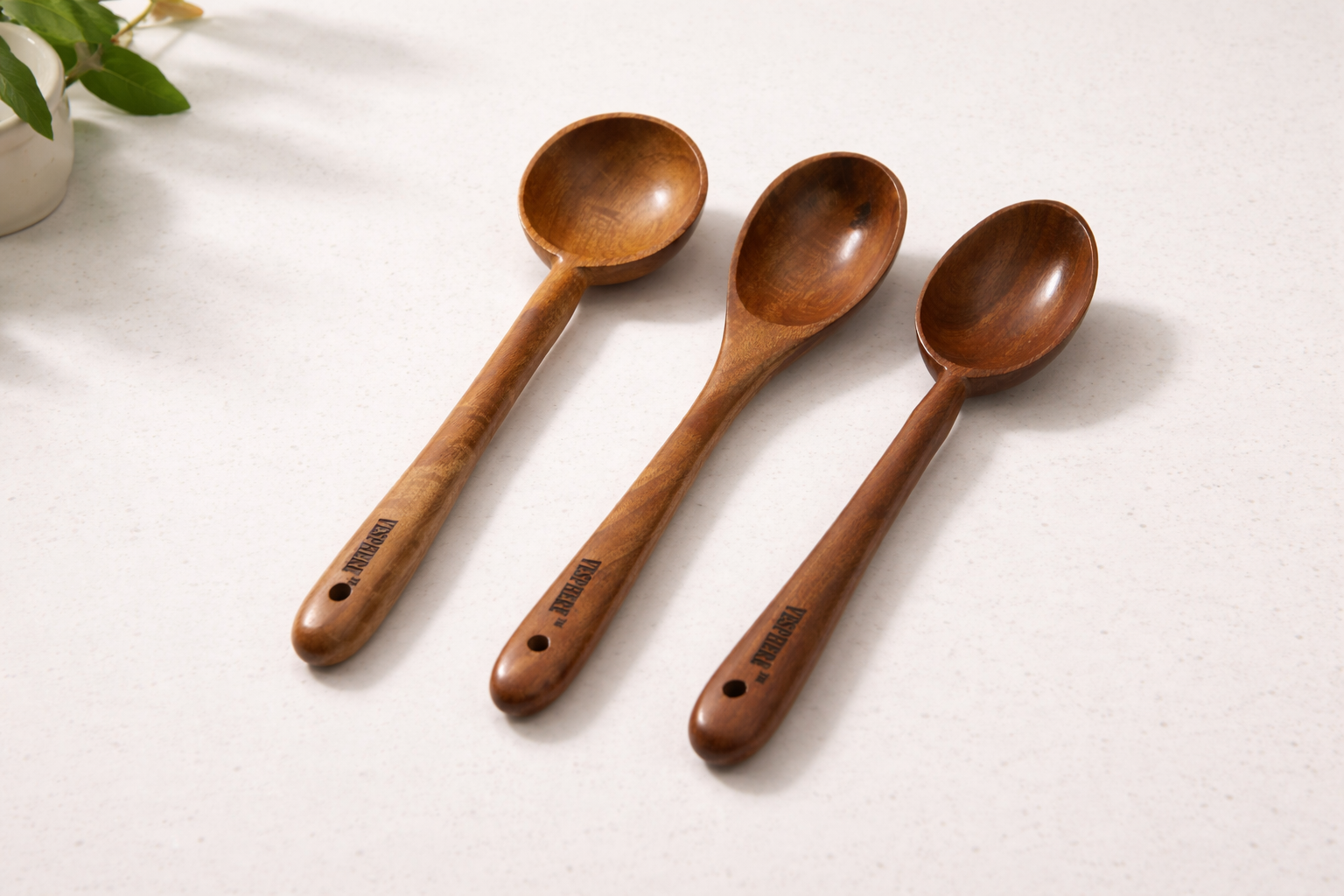 VESPHERE Neem Wood Ladle & 2 Spoons | Eco Kitchen Set