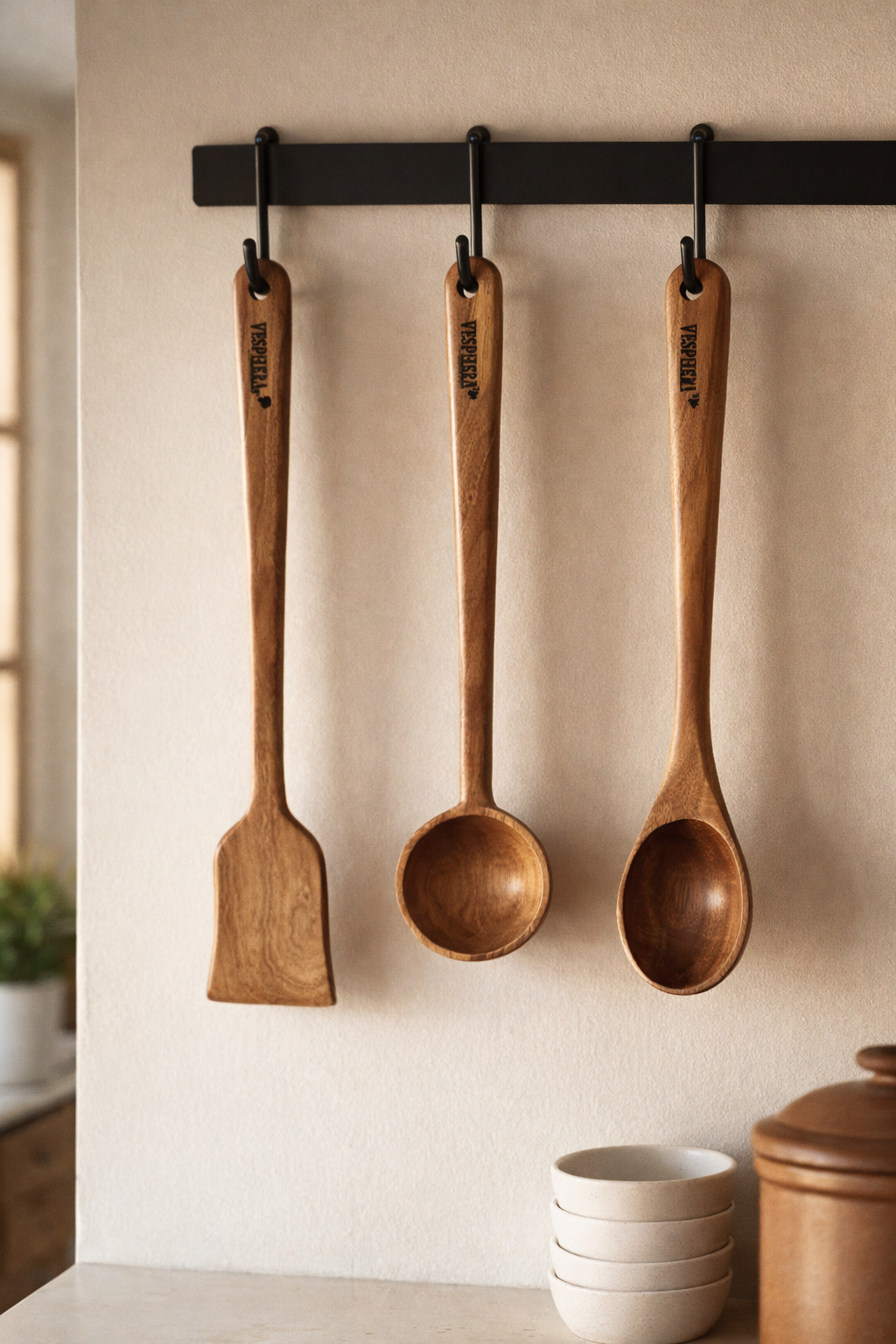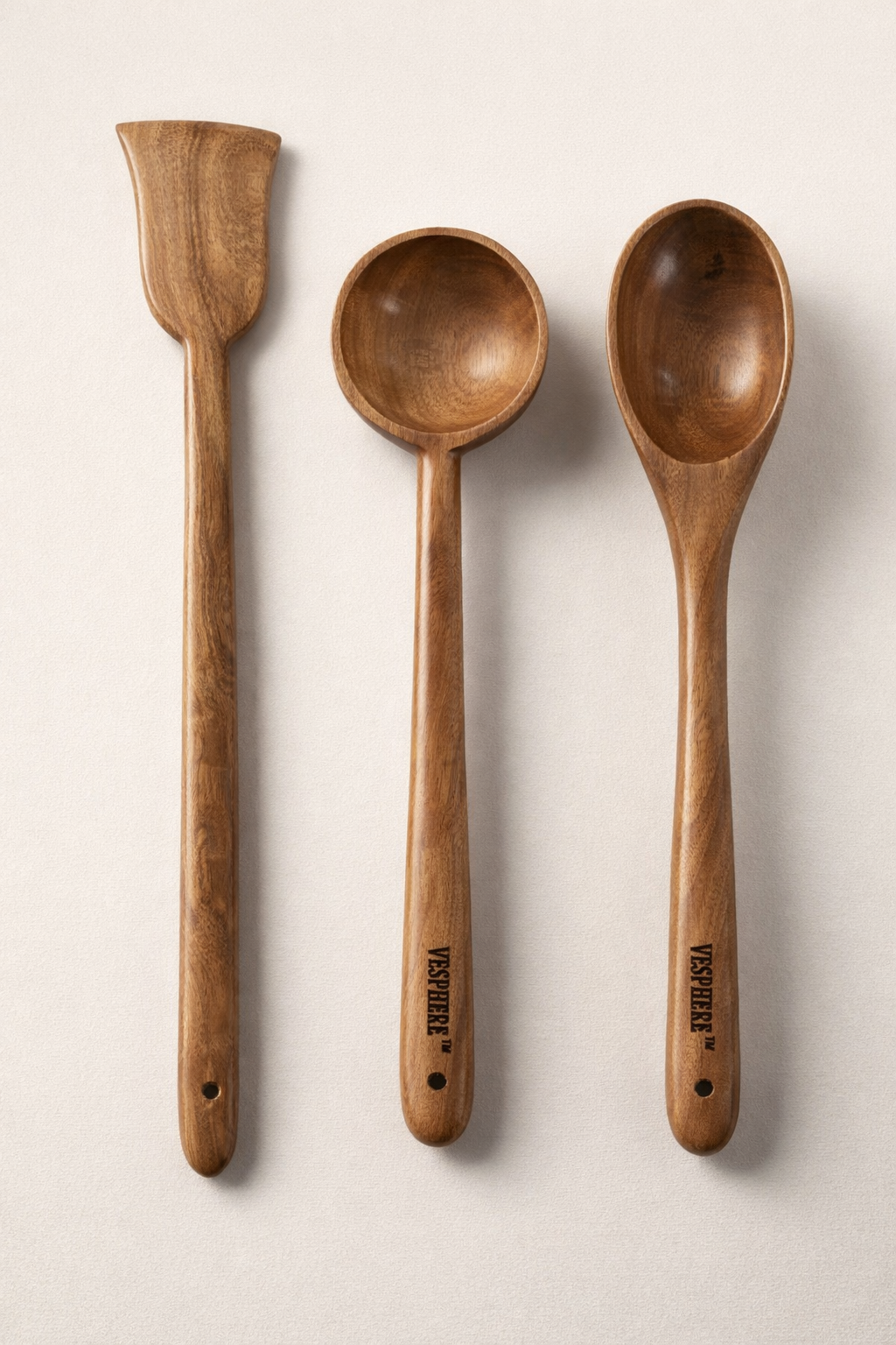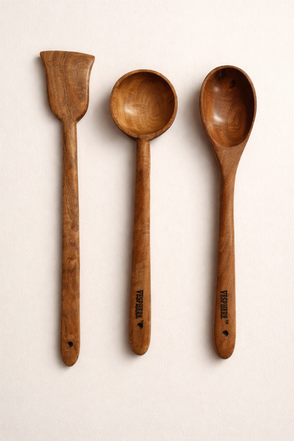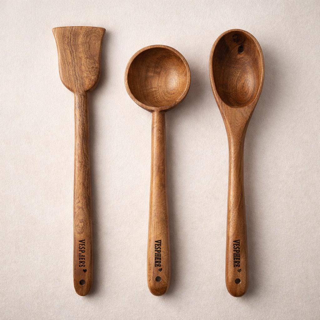 🌿 VESPHERE Neem Wood Spatula, Ladle & Spoon Set – Natural & Eco-Safe