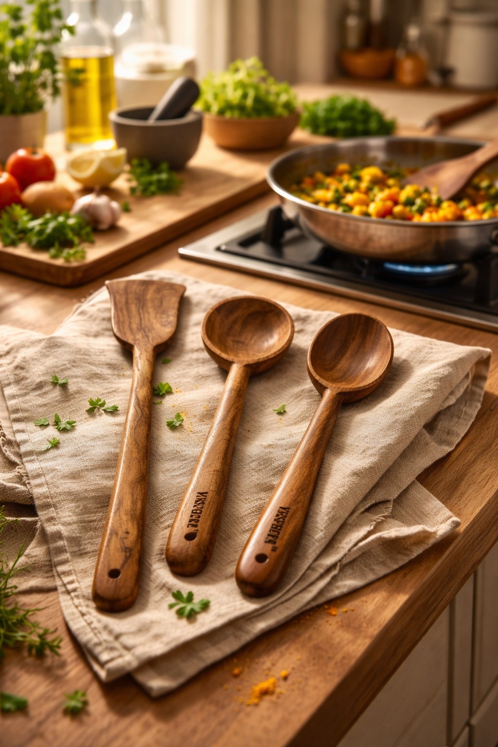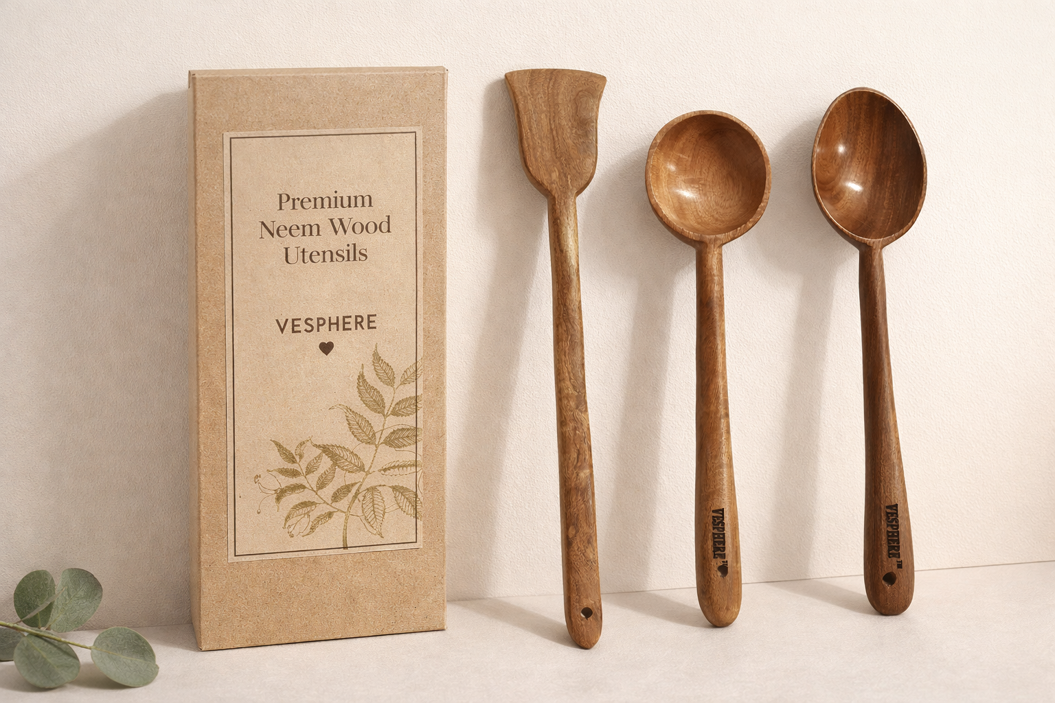 Upgrade your everyday cooking with the VESPHERE Neem Wood Spatula, Ladle & Spoon Set, thoughtfully handcrafted from 100% natural neem wood. Designed for both traditional and modern kitchens, this premium utensil set combines durability, safety, and timeless elegance.