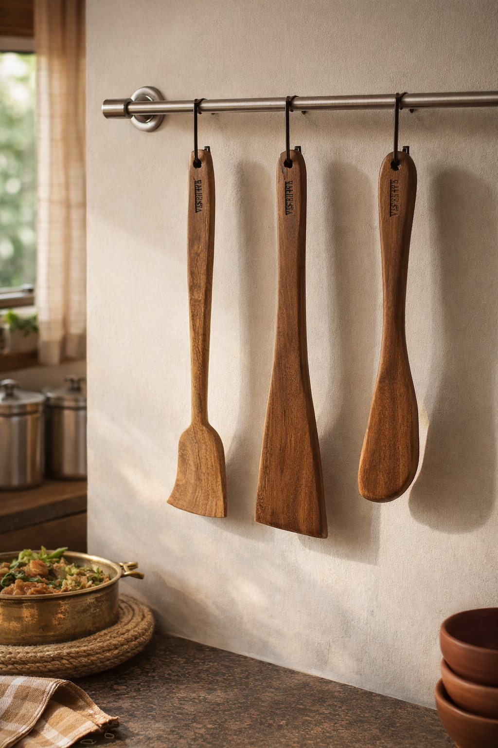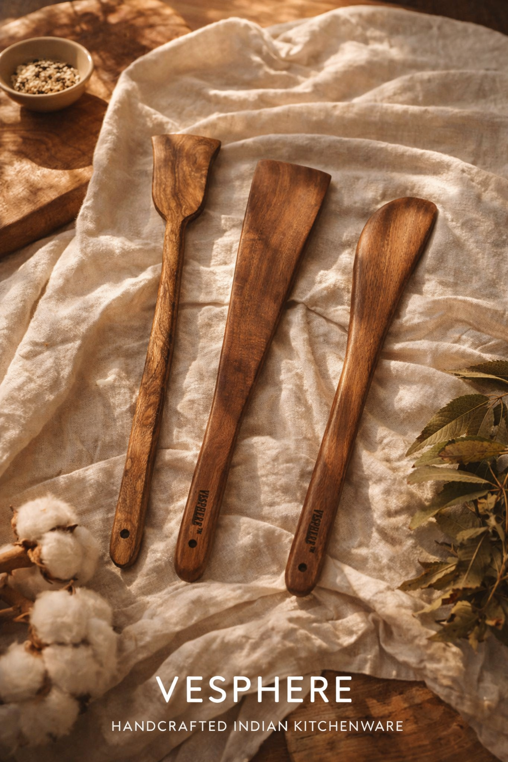 Finished with a smooth, food-safe polish, this set blends traditional craftsmanship with a modern premium look. Strong, heat-resistant, and eco-friendly, VESPHERE neem wood utensils are built to last and enhance your cooking experience every day.