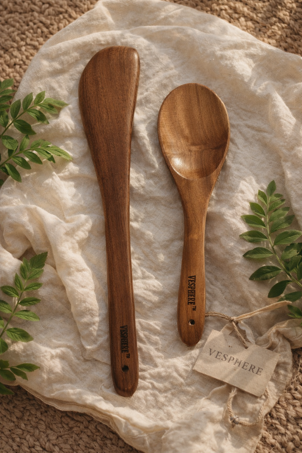VESPHERE Neem Wood Turner & Rice Serving Spoon Set is crafted from 100% natural neem wood, offering a safe, antibacterial, and eco-friendly cooking solution. Gentle on non-stick cookware, heat-resistant, and ergonomically designed for everyday Indian cooking.