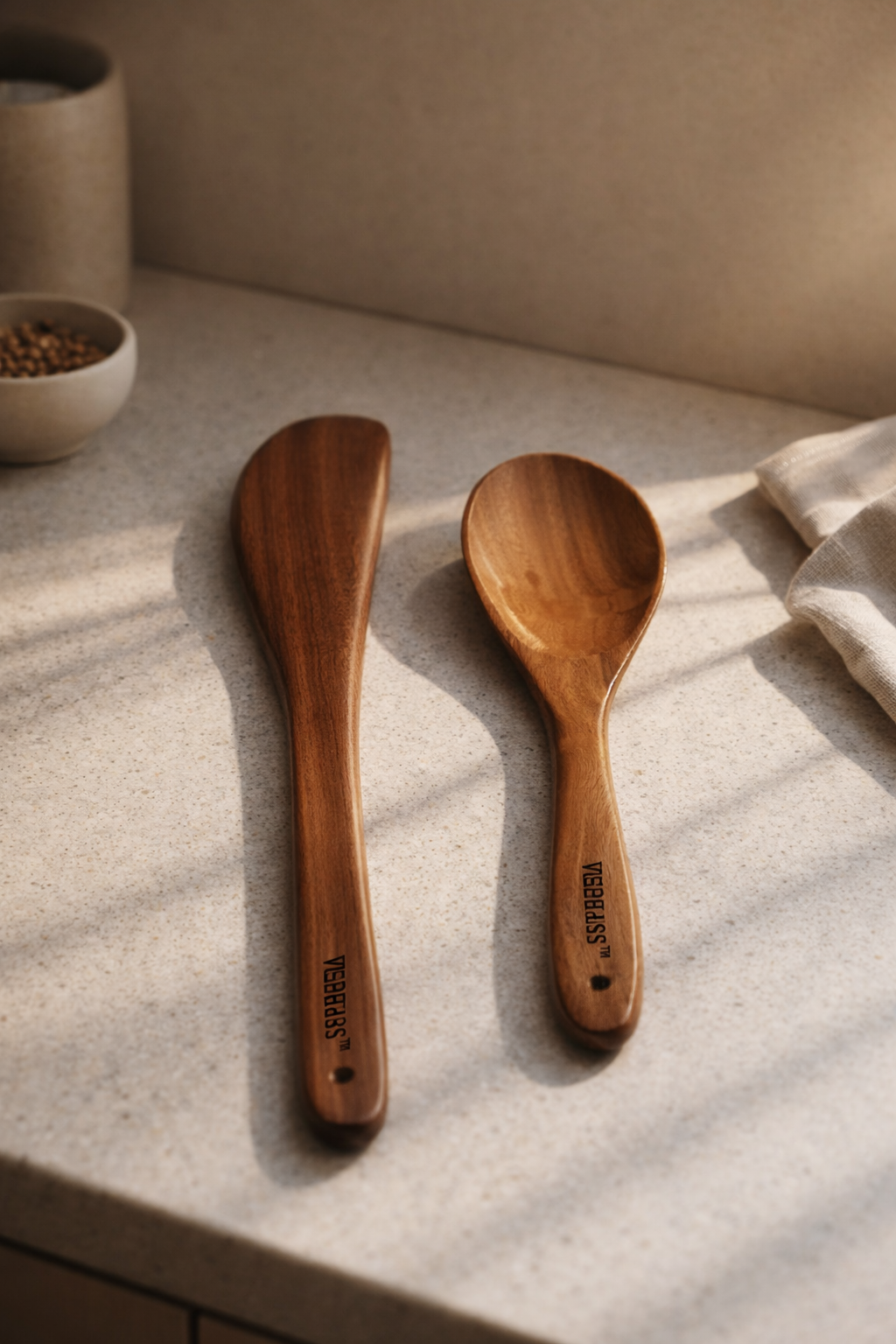 🌿 VESPHERE Neem Wood Turner & Rice Serving Spoon Set