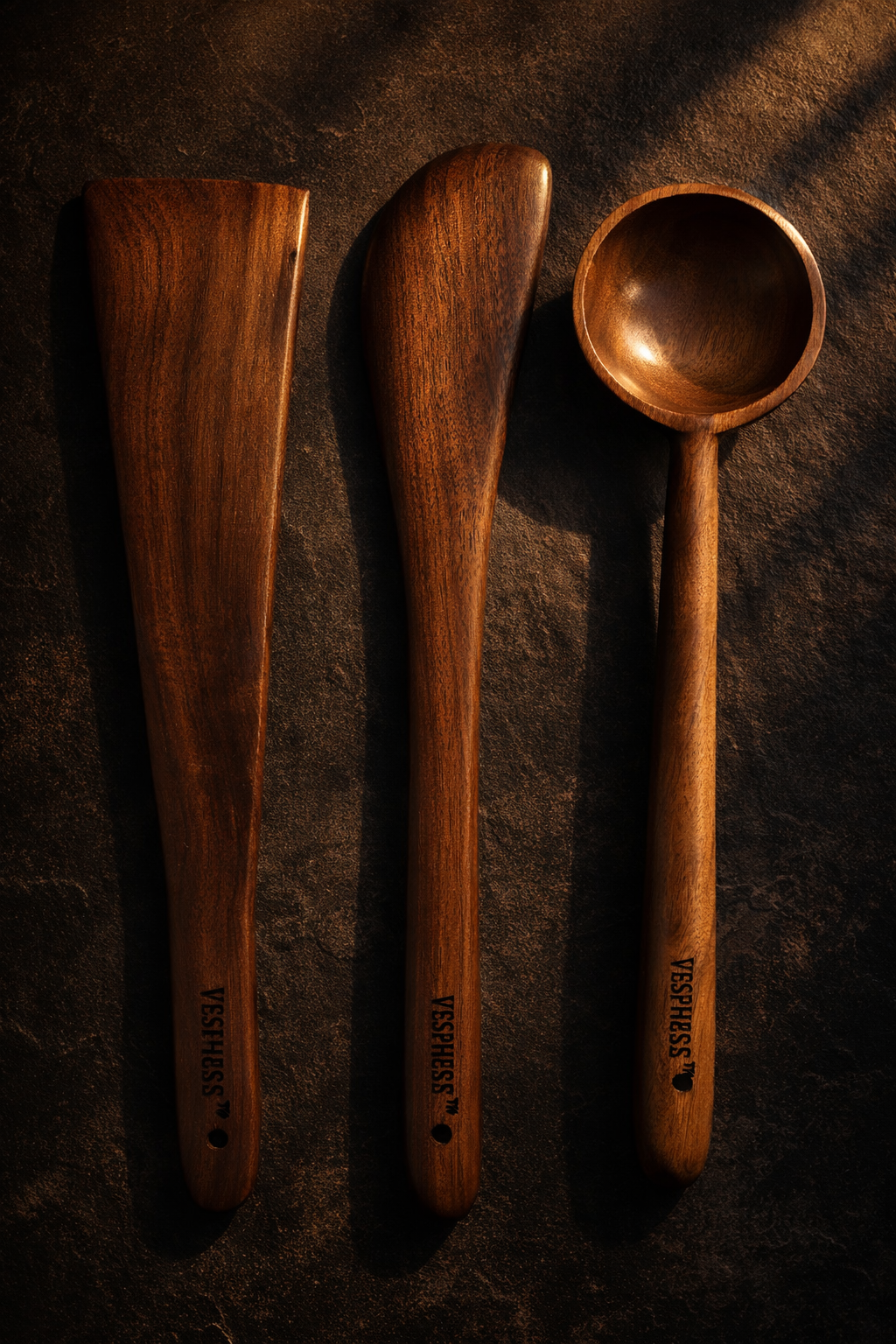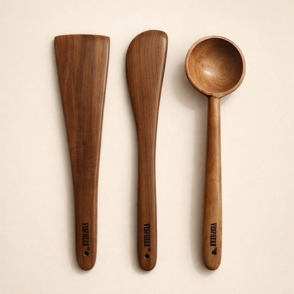 Perfect for daily cooking, gifting, or upgrading your kitchen essentials, the VESPHERE Neem Wood Utensil Set combines sustainability, durability, and timeless design—making it an Amazon-friendly must-have for conscious home cooks.