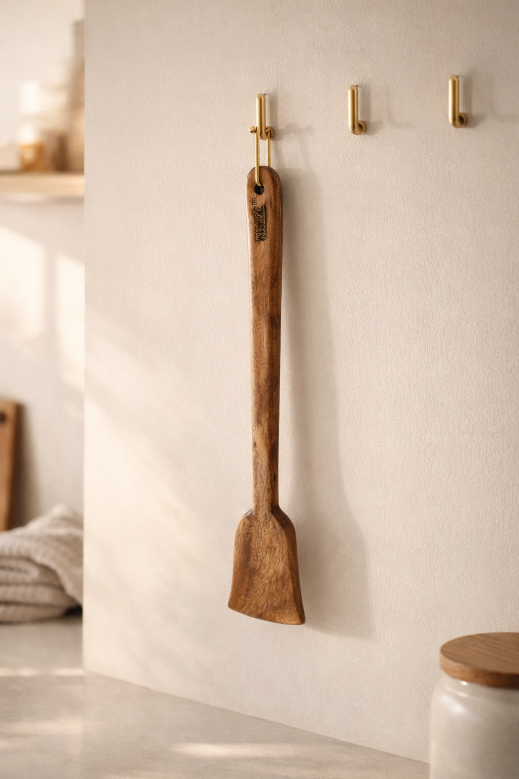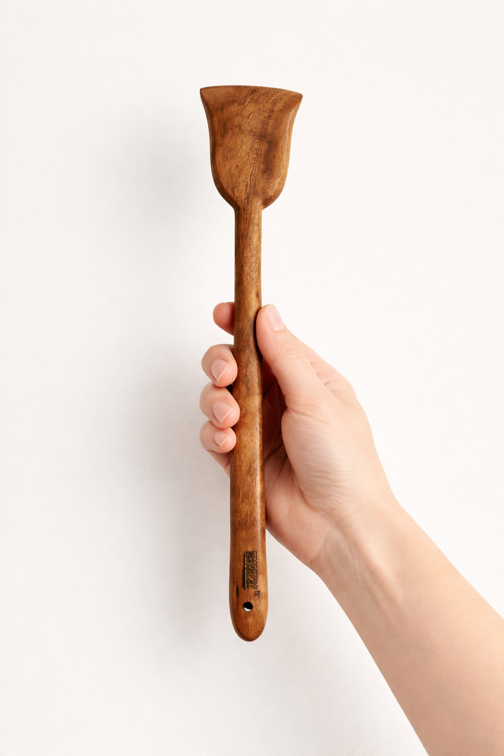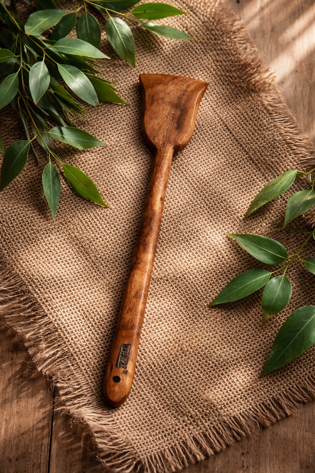 The flat, wide head easily flips rotis, dosas, pancakes, omelettes, vegetables, and cutlets, while the long ergonomic handle keeps your hands safe from heat. Neem wood is naturally resistant to moisture, odor, and bacteria, making it a healthier alternative to plastic or silicone spatulas.