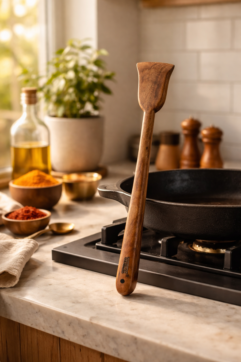 Perfect for traditional Indian cooking as well as modern kitchens, the VESPHERE Neem Wood Spatula helps preserve the natural taste of food while promoting a healthy, toxin-free lifestyle.